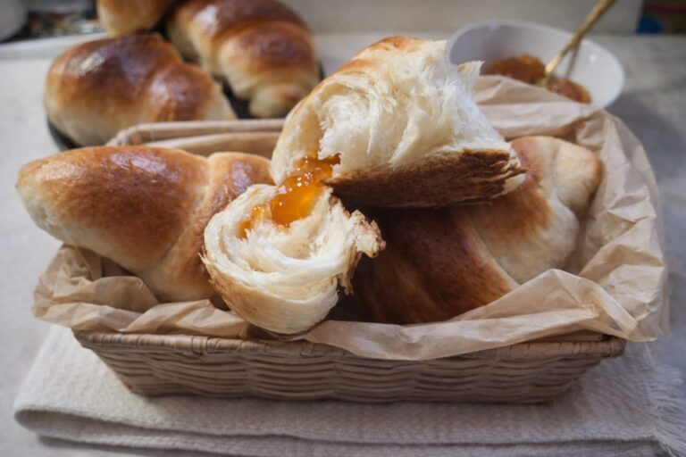 Cornurile cu gem îmi aduc aminte de copilărie, pentru că mama ni le făcea deseori. Aceste cornuri sunt făcute după rețeta ei, din aluat ca de cozonac, și sunt tare…