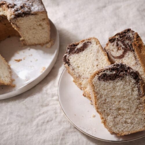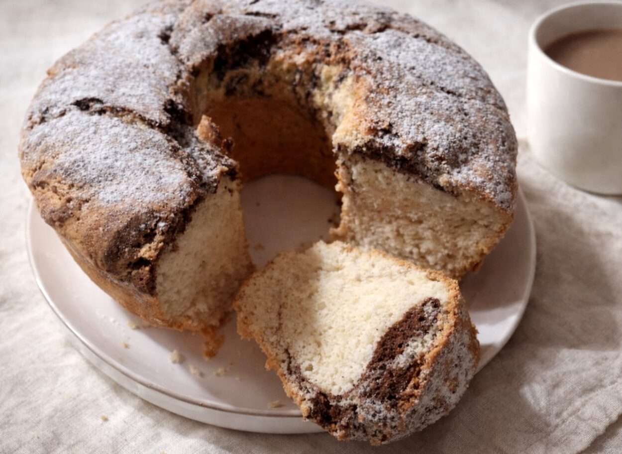 Forma de guguluf se unge foarte bine cu unt şi se tapetează cu făină. Apoi, se toarnă compoziţia albă, iar deasupra se adaugă cea din cacao integrând-o cu un băţ de frigăruie sau cu o furculiţă.