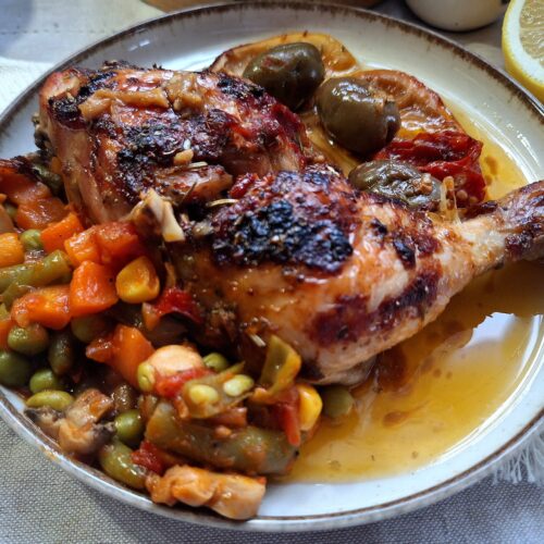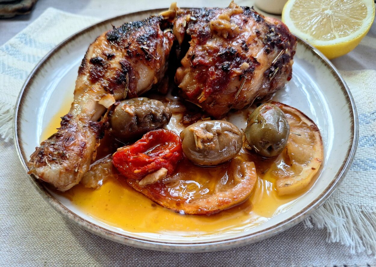 Nouă ne plac mult pulpele de pui la cuptor și le preparăm în diferite moduri. De data aceasta am ales să le fac cu măsline și felii de lămâi, la cuptor. A fost o idee îndrăzneață, aș putea spune, pentru că nu le mai pregătisem așa și nu știam care va fi rezultatul final. A fost unul super și l-aș repeta de multe, multe, ori.