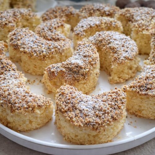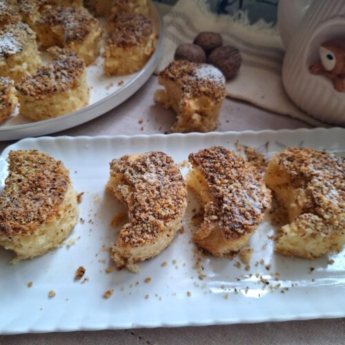 Îmi amintesc de faptul că prăjitura semilună cu nucă se găsea printre prăjiturile copilăriei. Era la modă atunci această prăjitură și mama o făcea aproape la orice eveniment. Aceasta și prăjitura cu albuș, pe care o găsiți aici: https://detotfelul.ro/2025/10/27/prajitura-cu-albus/ Deși o știm ca pe o prăjitură de casă, fără pretenții, forma ei de semilună are o poveste mai veche, întâlnită în multe bucătării europene. Ea este legată de simbolul lunii și de ideea de dulce de sărbătoare sau de duminică. Variante apropiate de semiluna noastră se găsesc și în Ungaria la prăjiturile cu nucă și blat pufos sau în Austria. La noi, prăjitura semiluna este mai degrabă o prăjitură de casă reinterpretată și apare frecvent în caietele vechi de rețete în Ardeal și Banat. Personal, am iubit mereu la ea blatul pufos, aromat și nuca abundentă de deasupra, prăjită în cuptor. Pentru această prăjitură am râșnit nuca, dar mama o fărâma cu sucitorul, lăsând-o puțin mai mare, să se simtă în gură. Și o făcea cu ulei, nu cu unt, însă acesta îi dă prăjiturii o textură mai pufoasă. Prăjitura semilună cu nucă nu este o prăjitură dificil de făcut, este ușor de preparat chiar și pentru începători și se face repede. Despre gust, ce să vă spun?! Este un deliciu și simți că se topește în gură de moale ce este. V-am făcut poftă, nu-i așa? Atunci hai să vedem ce ne trebuie pentru această prăjitură a copilăriei.