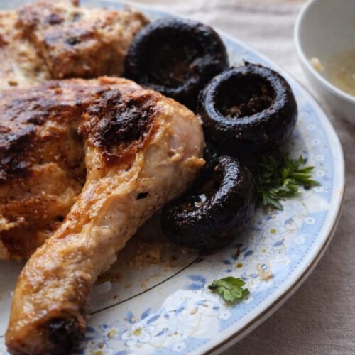 Lasă puiul să se odihnească 5-10 minute înainte de servire. este delicios alături de cartofi copți ca aici: https://detotfelul.ro/2026/02/02/cartofi-cubulete-preparati-la-cuptor/ sau cu piure, orez simplu, mix de legume, ciuperci sau/ și cu o salată proaspătă.