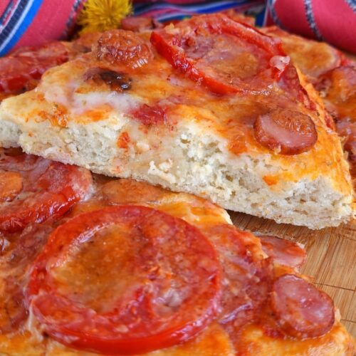 Pizza turnată la tavă- rețeta rapidă și pufoasă