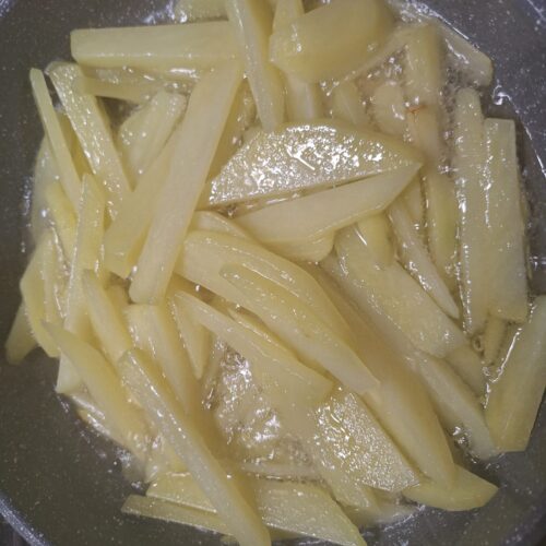 1. Curăță cartofii de coajă și taie-i felii sau bastonașe.