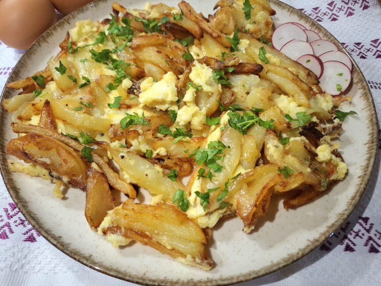 Cartofi în tigaie cu ou și mozzarella-rețetă simplă și rapidă