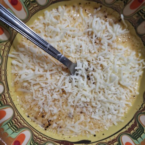 • Pentru o textură mai uniformă, mozzarella poate fi amestecată direct în ouăle bătute, înainte de a fi turnate peste cartofi.